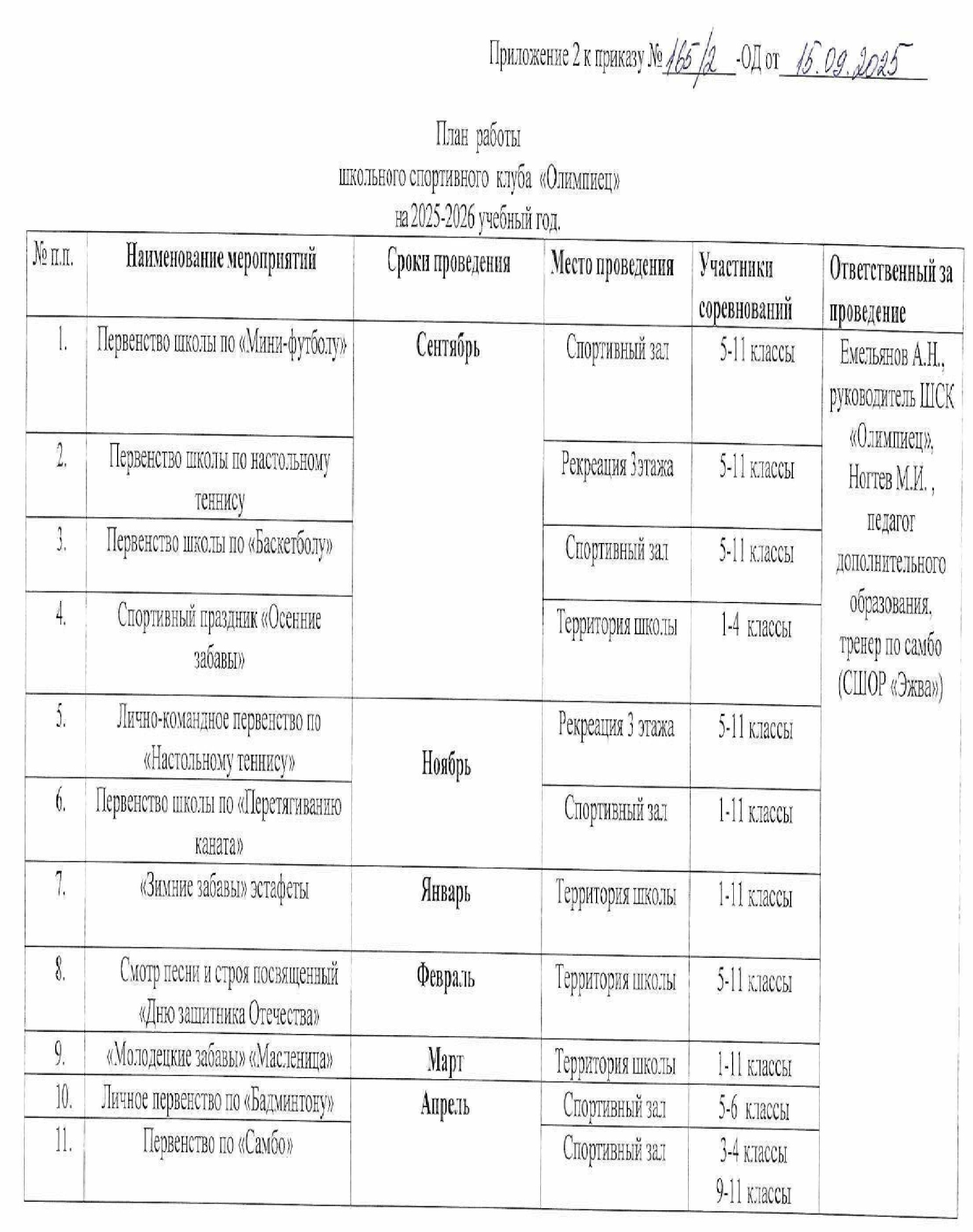 Руководитель ШСК "Олимпиец" – Емельянов А.Н.